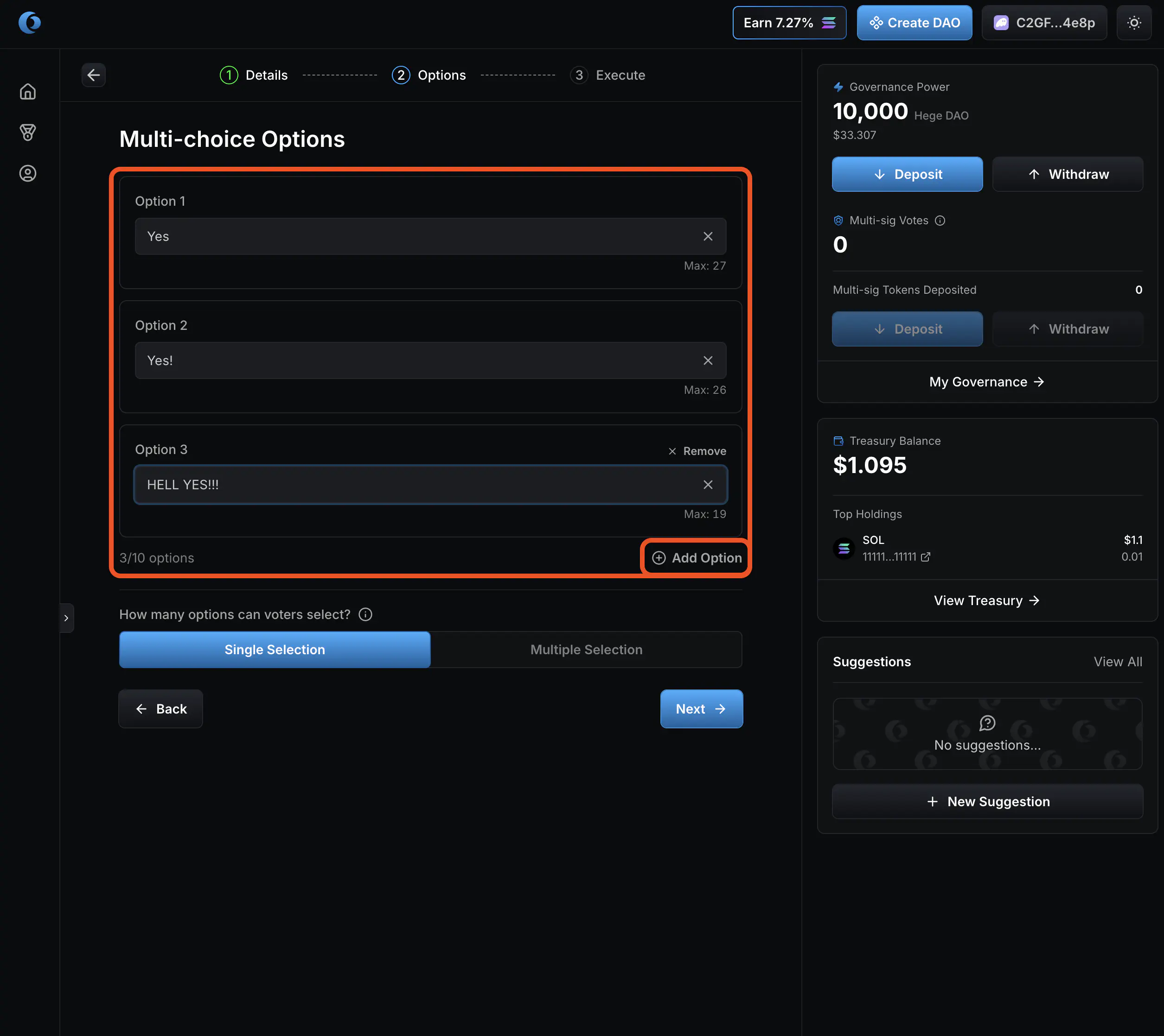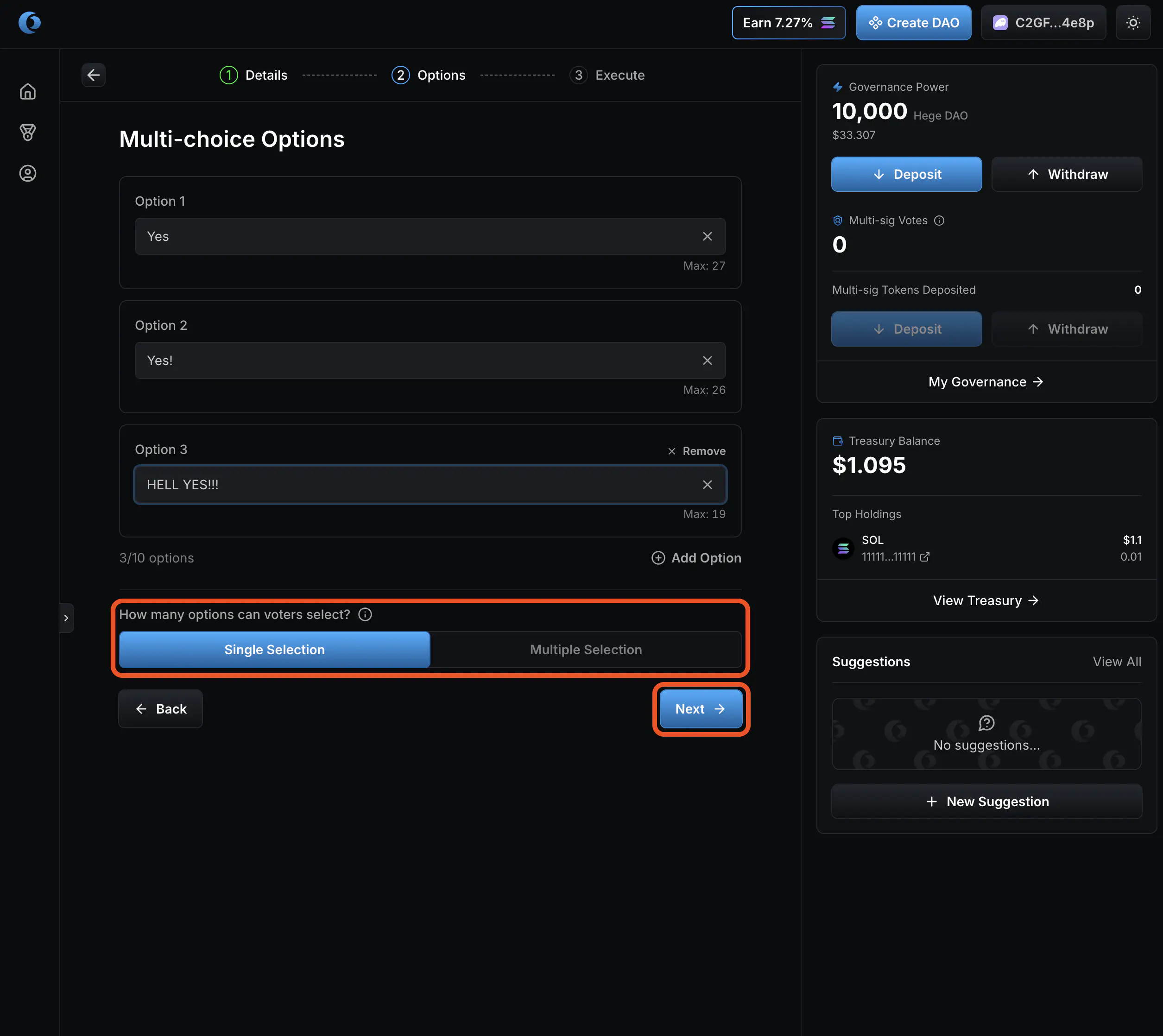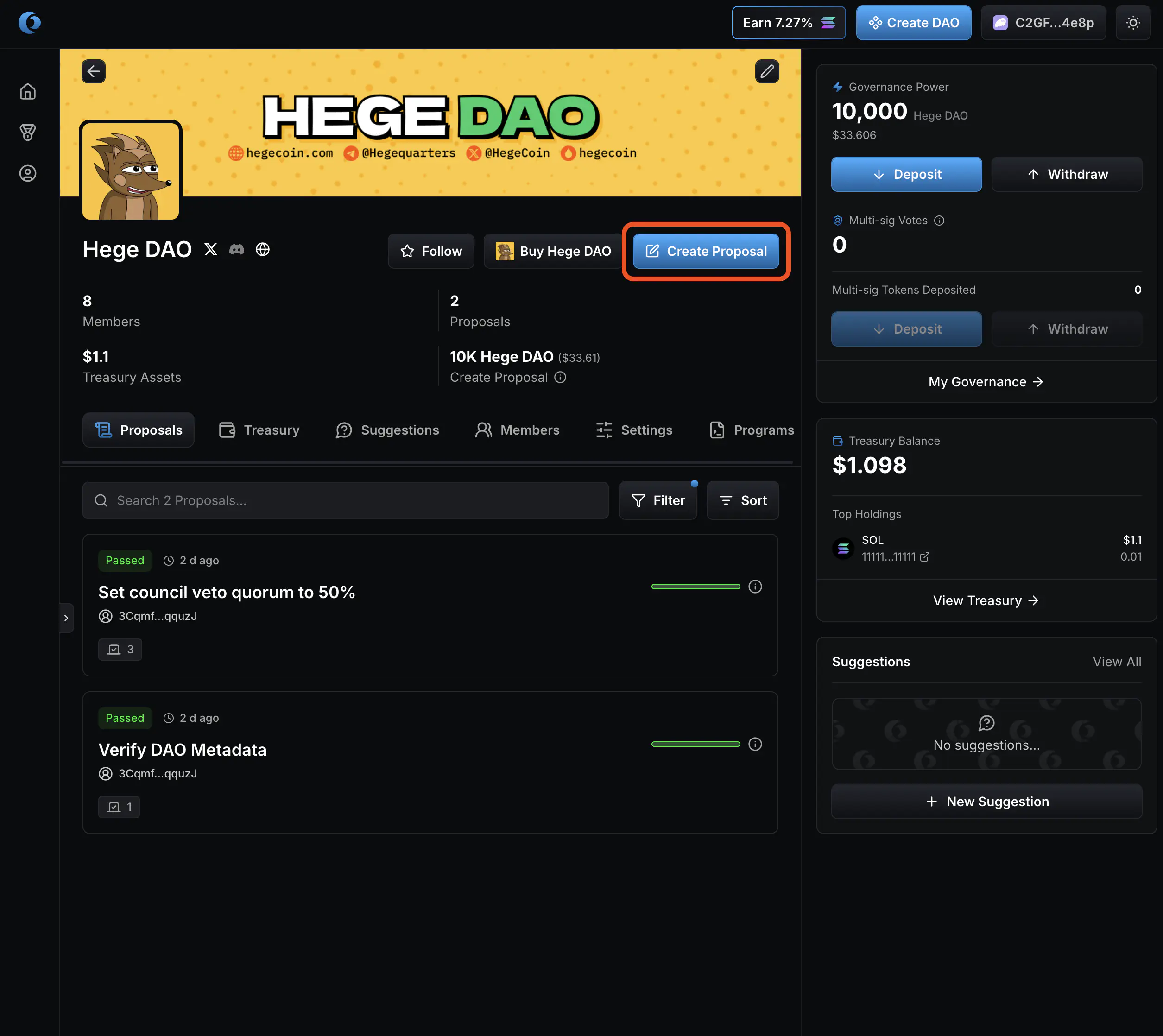 - That’s it! Your proposal is created and open for voting. Now go share it with the Hege community! And don’t forget to vote on your proposal. See How to Vote in the Hege DAO if you need help with that.