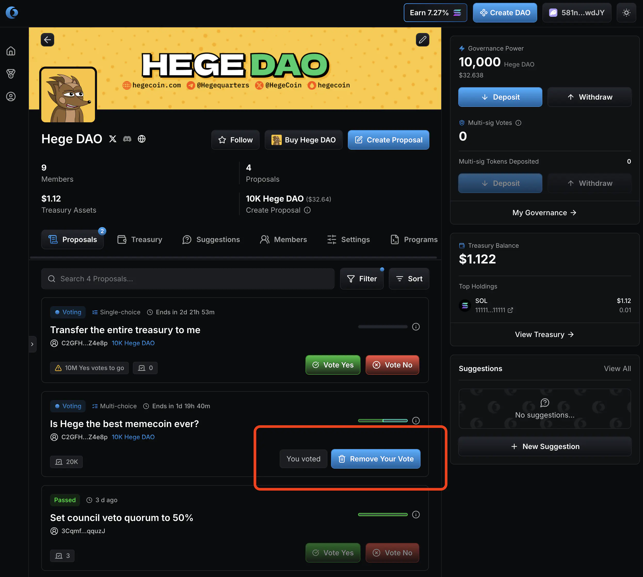 How to vote in the Hege DAO