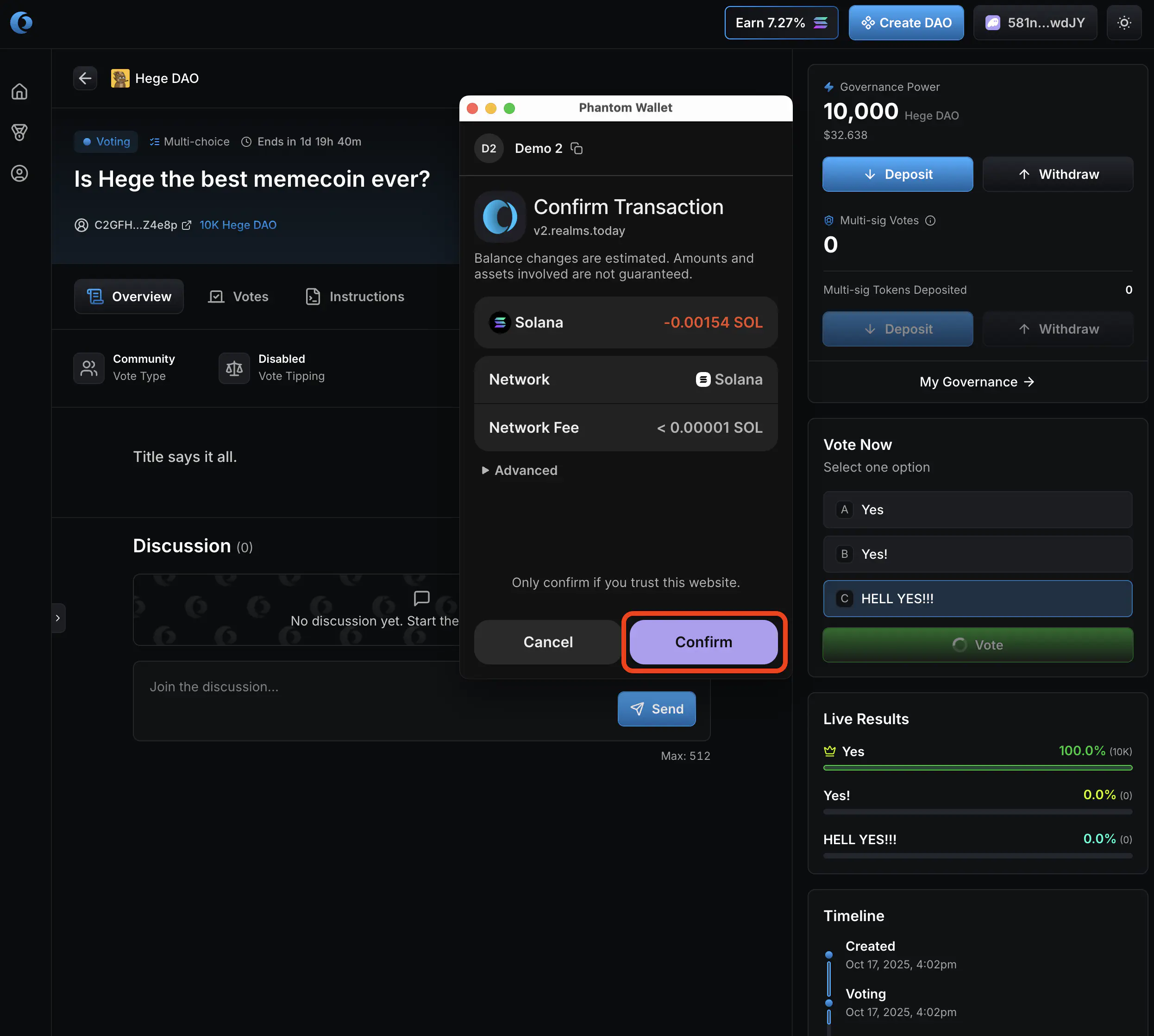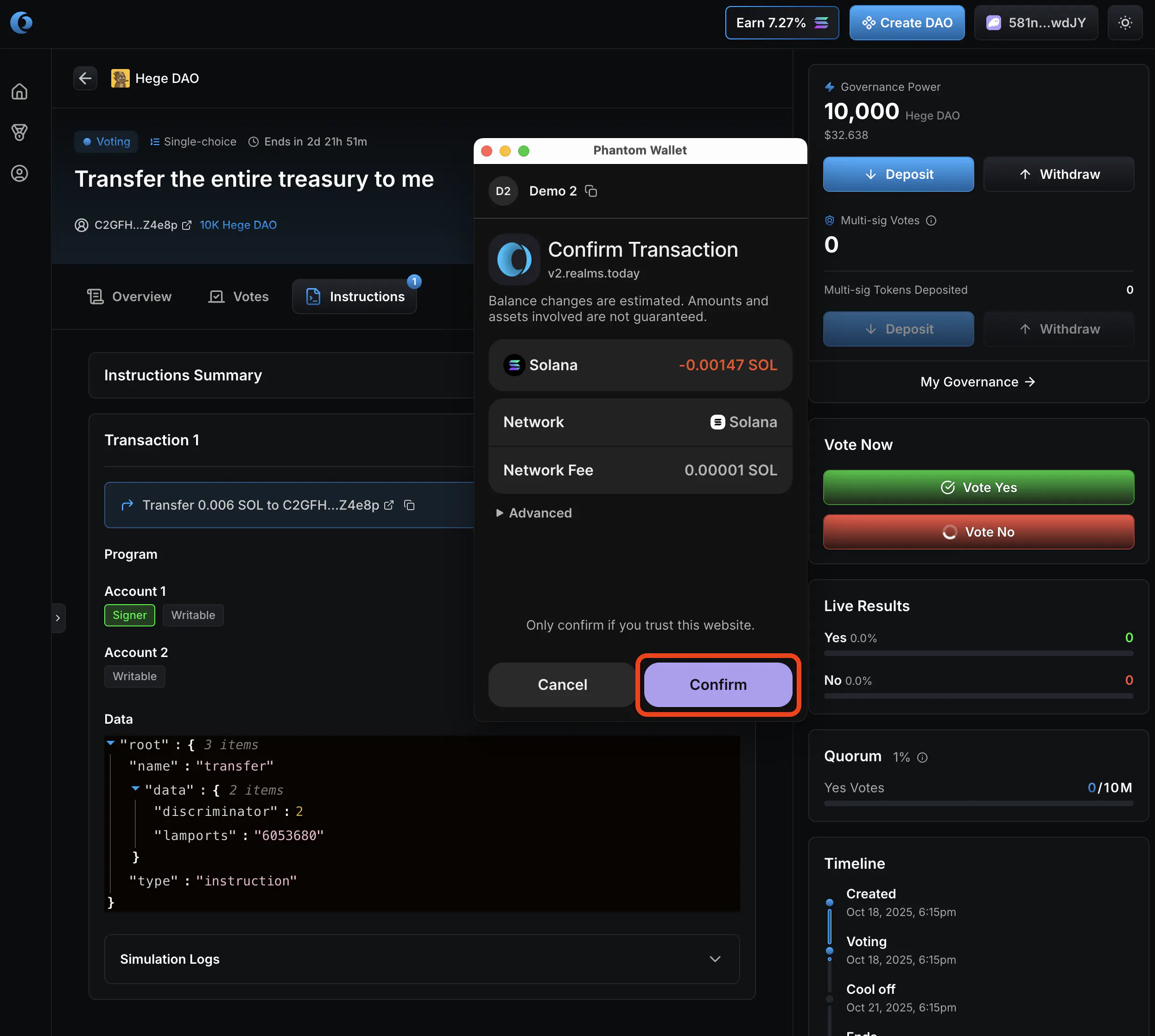 1. Confirm the vote in your Solana wallet.