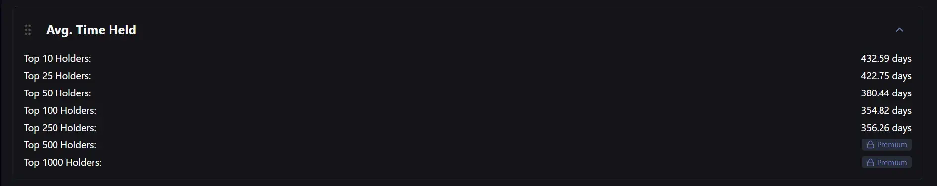 A diamond hand is defined here as a holder who held for 90 days or more. But in fact, most $HEGE diamond hands have held A LOT longer than that, as the average time held for the top 250 wallets is 356 days.